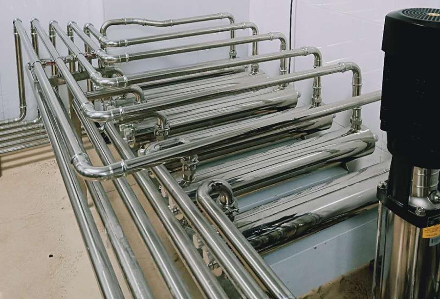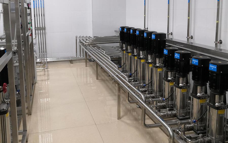 石門縣婦幼中央分質(zhì)供水系統(tǒng)包含:預(yù)處理部分、一級(jí)反滲透部份、檢驗(yàn)用水部分、直飲水抑菌保鮮變頻供水系統(tǒng)、醫(yī)用水抑菌保鮮變頻供水系統(tǒng)、智能控制系統(tǒng)、機(jī)房抑菌系統(tǒng)等。采用兩套主機(jī)并行運(yùn)行,可自動(dòng)切換。供水系統(tǒng)實(shí)現(xiàn)全流程封閉式循環(huán)管路輸送,輸送管路采用高品質(zhì)不銹鋼管。系統(tǒng)用水覆蓋消毒供應(yīng)中心、檢驗(yàn)科、手術(shù)室、兒科、產(chǎn)科、各個(gè)直飲水用水點(diǎn)等。