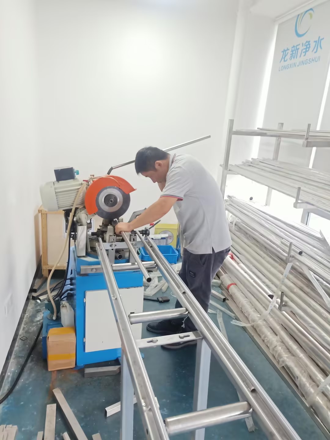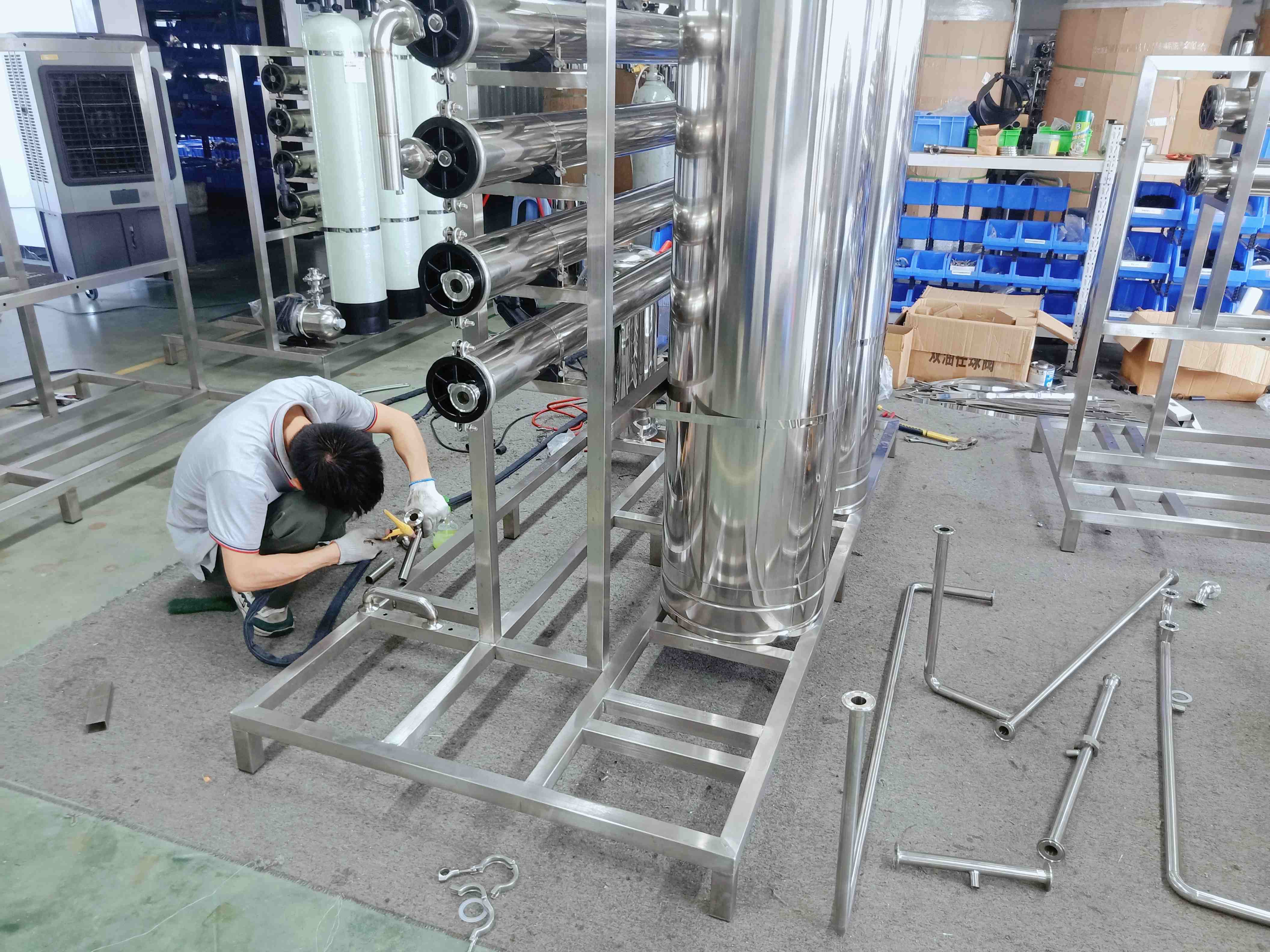 走進(jìn)生產(chǎn)車間,機(jī)器的轟鳴聲不斷,員工們正緊張有序地在各自的工作崗位忙碌著,下料、沖壓、焊接、安裝、接線、調(diào)試、打包等工序有條不紊,一套套水處理系統(tǒng)正源源不斷地生產(chǎn)出來,生產(chǎn)現(xiàn)場秩序井然。